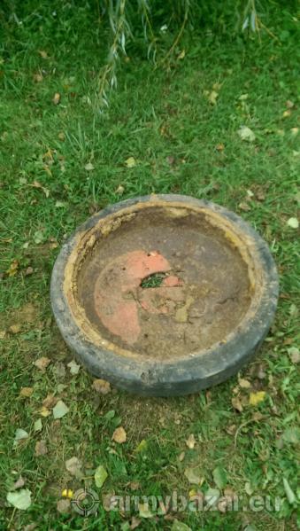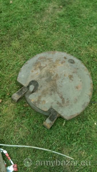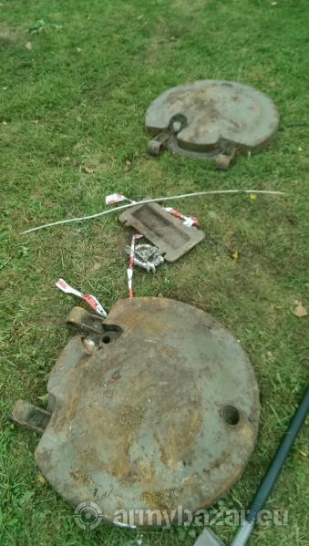 Popis: Prodám 2ks poklopů z nezjištěného bojového vozidla. Dále 1 ks tankového kola. Viz fotografie.. Nalezeno na pozemku pod ornicí..