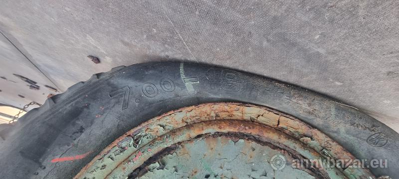 Popis: Koupím pneumatiky 7.00-18 (nejlépe vzorek Bundeswehr ). Nezpuchřelé, použitelné.