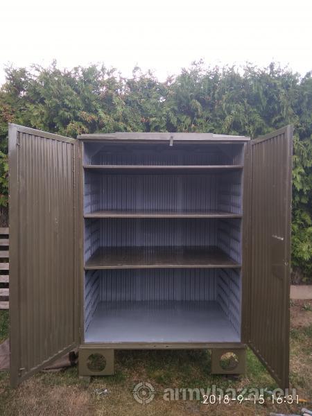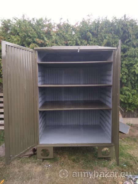 Popis: Prodám těžkou ocelovou skříň ruské výroby dvoudvéřová ve velmi zachovalém stavu, opraven celkový nátěr, drobná koroze odstraněna. Byla používána v armádě ČR pro přepravu a skladování těžkých náhradních dílů. Skříň byla skladována v suchém prostředí.