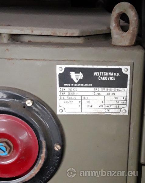 Popis: PRODÁM původně vojenskou elektrocentrálu EC 30 KW (ČS-AD 30-3-400), zdroj střídavého proudu a napájení různých třífázových a jednofázových spotřebičů, např. jako energetický zdroj střídavého proudu k osvětlení a napájení různých třífázových a jednofázových spotřebičů (radiové stanice, osvětlovací soupravy,tovární haly, ...). Umístěno na dvounápravovém podvozku P-38R ve vleku za tažným vozidlem. Maximální rychlost jízdy za tažným vozidlem na silnicích je 80 km/hod. Hlavní části elektrocentrály EC 30 kW jsou: naftový motor T 924 A-53 a bezkroužkový alternátor BGC 8104 s bezkontaktním regulátorem napětí. Vlastní odvoz Velké Meziříčí
